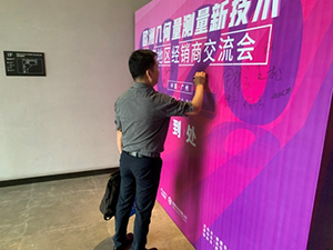 上午9時(shí)許,會(huì)場(chǎng)已準(zhǔn)備就緒,各家經(jīng)銷(xiāo)商代表陸續(xù)到場(chǎng)簽到,并在會(huì)議簽名墻上簽名留念。