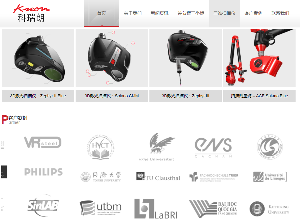 鴻華科技有限公司是法國科瑞朗KREON關(guān)節(jié)臂三坐標(biāo)測量儀/三維激光掃描儀國內(nèi)授權(quán)代理商&戰(zhàn)略合作伙伴、華南區(qū)總代理,為進一步做好法國科瑞朗KREON產(chǎn)品宣傳和推廣,我司特為法國科瑞朗KREON產(chǎn)品設(shè)計制作專屬網(wǎng)站,以便廣大客戶能更加便捷地了解法國科瑞朗KREON相關(guān)產(chǎn)品信息。該網(wǎng)站設(shè)計簡潔明了,美觀大方,詳細(xì)展示了法國科瑞朗KREON公司關(guān)節(jié)臂三坐標(biāo)測量儀、三維激光掃描儀等產(chǎn)品。歡迎大家點擊查看!